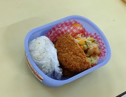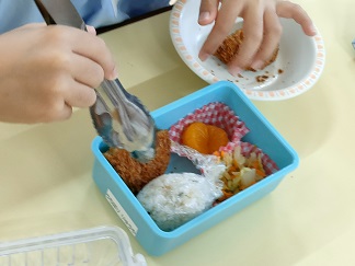 お弁当箱におかずを入れてお弁当ランチを楽しみました