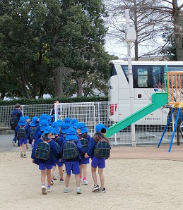 大型バスに元気よく乗り込みました