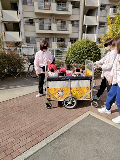 ひよこ組(0歳児)のお友だちがお散歩に出かけました