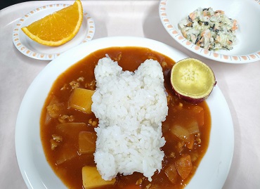 満月とうさぎハヤシライス・サラダ・オレンジ