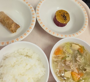 八宝菜・焼き春巻・あんかけさつまいも・米飯