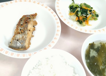 白身魚ごまだれ焼き・おひたし・新じゃがみそ汁・米飯