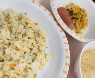 チャーハン・三色ナムル・ウインナ・みそ汁