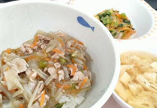 ごぼトン丼・みそ汁・三色ナムル