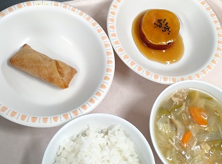 八宝菜・焼き春巻き・さつまいもの甘だれがけ・米飯