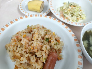 和風チャーハンウインナ添・ごまドレサラダ・みそ汁・バナナ