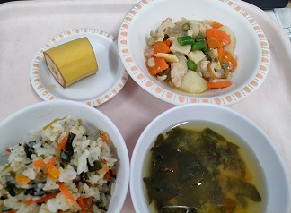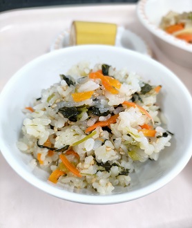 菜めし・筑前煮・かぼちゃのみそ汁・バナナ