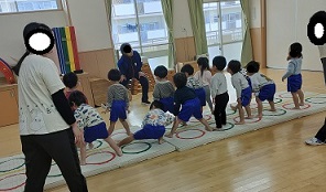 うさぎ組(2歳児)のお友だちが体育教室に参加しました