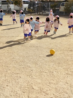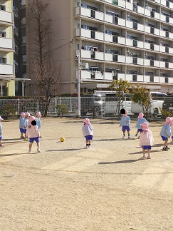 ドッジボールを楽しんでいるのはぱんだ組(年少)のお友だちです