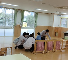 地震の後に大津波警報が発令された想定で訓練に参加しました