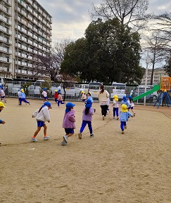 朝の体操の後にミニマラソンをしました